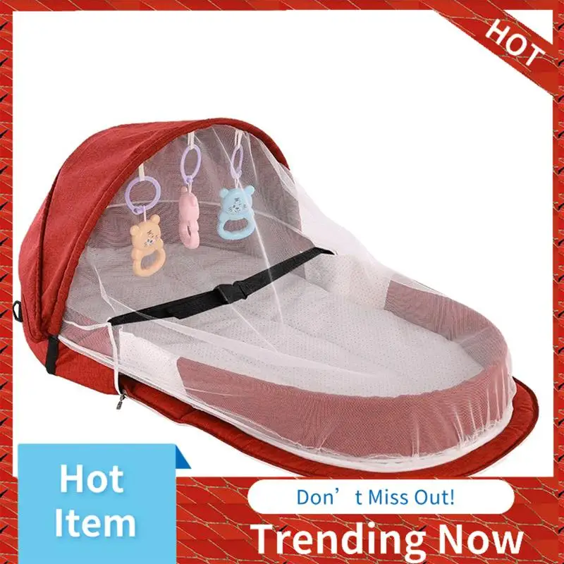 24-Stunden-Lieferung Tragbares Babybett mit Netz und Markisennest, zusammenklappbares Babybett für Camping, für Babys, Kleinkinderbett, Stubenwagen, Rot