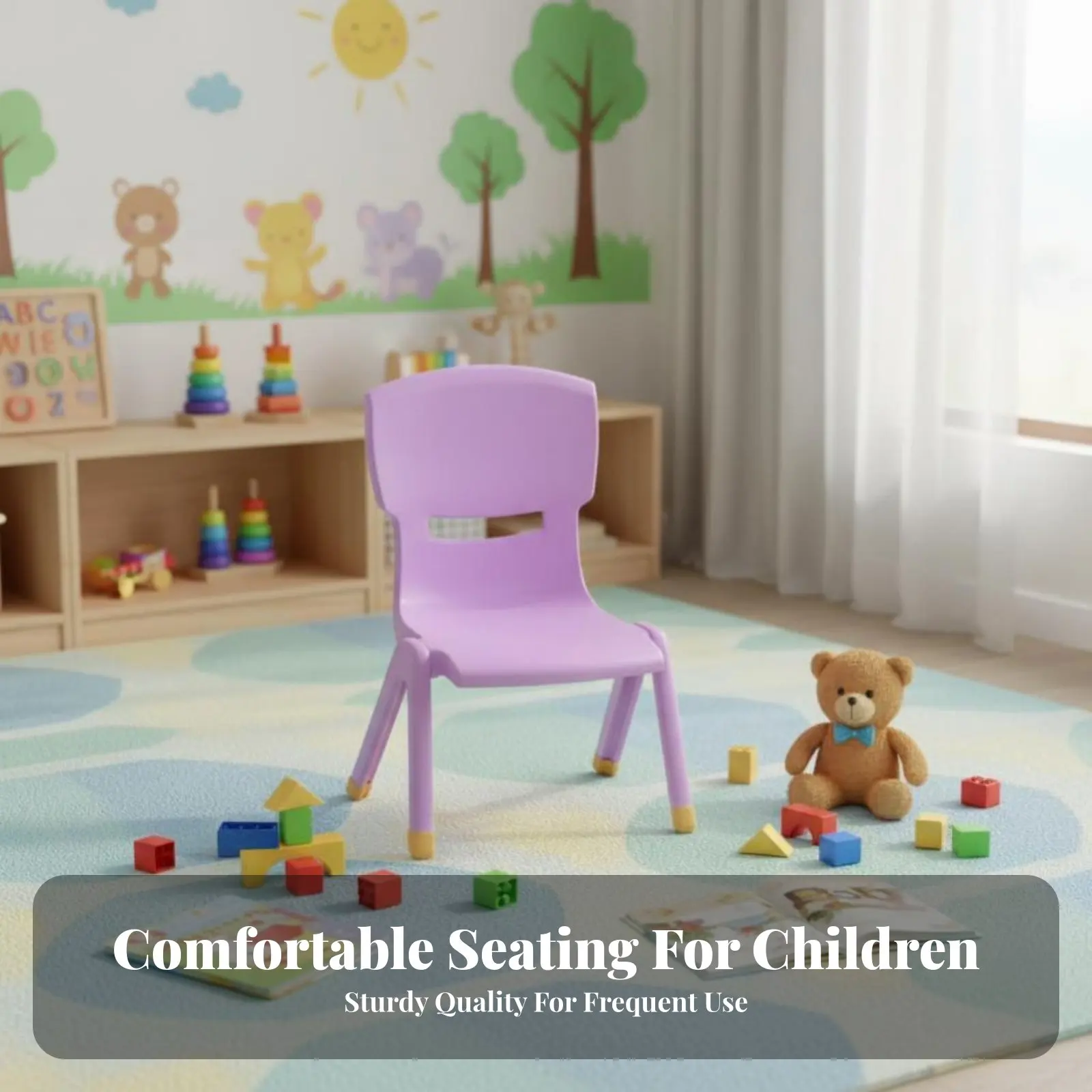 Kleiner Kunststoffstuhl mit Rückenlehne, verdicktes Design, Kinderhocker, leicht zu reinigen, rutschfeste Füße für Kindergarten, Vorschule, Spielzimmer