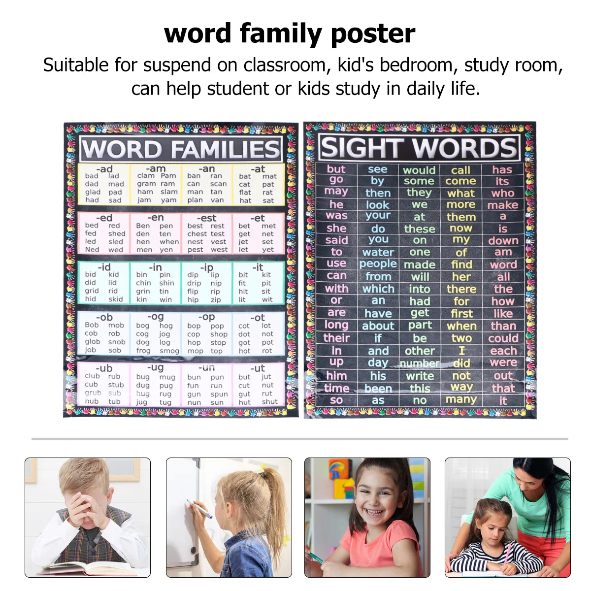 2 Stück Sichtwörter- und Wortfamilien-Poster, hochwertige, laminierte Lerndiagramme für den Einsatz im Klassenzimmer und im Lernraum