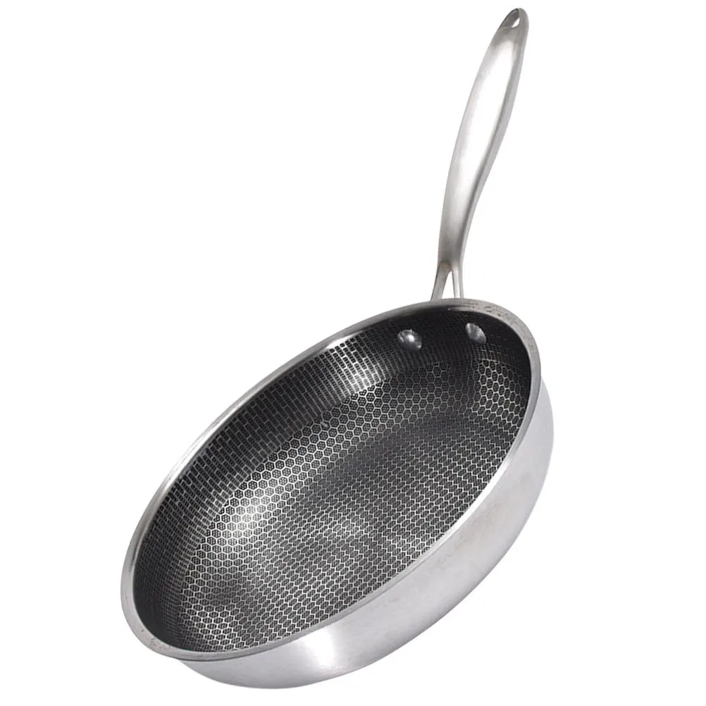 LMETJMA Bratpfanne aus Edelstahl, antihaftbeschichtete Waben-Bratpfanne mit Deckel, Induktion, Keramik, elektrische Gaskochfelder, kompatibel mit KC0480