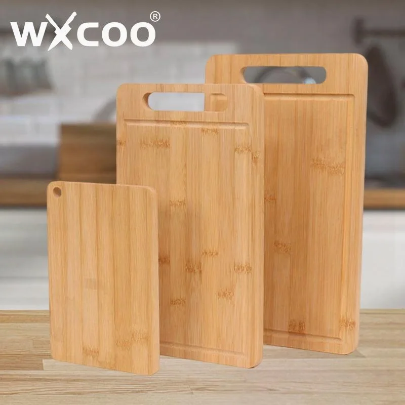 WXCOO Küchenschneidebrett, natürlicher Bambus, doppelseitiges Schneidebrett für Fleisch, Gemüse, Obst, Küchenschneide-Servierbrett