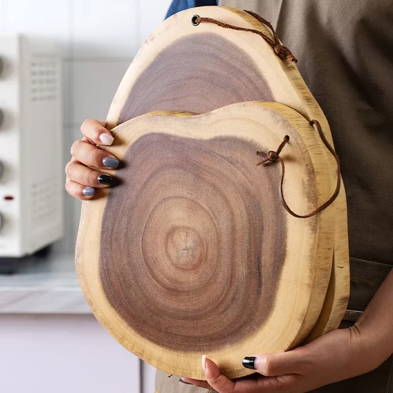 Schneidebrett aus Akazienholz – Schneidebrett aus natürlichem Holz, unregelmäßige Form, Brot- und Obstbrett, umweltfreundliches Küchenutensilien