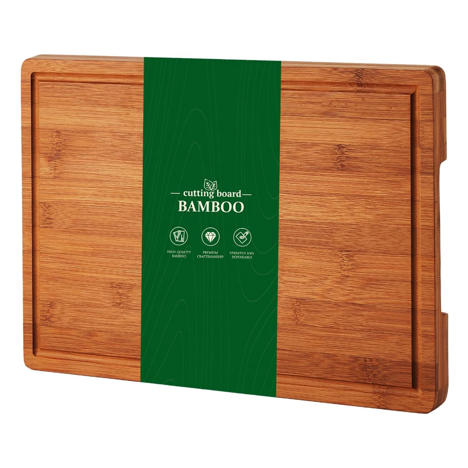 Charcuterie Bambus-Schneidebrett mit Saftrille und Griffen Holz-Schneidebrett für Küche Fleisch Truthahn Gemüse 28x40cm