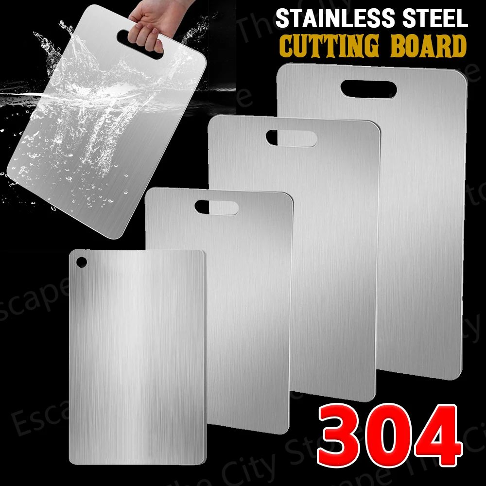 Schneidebrett aus Edelstahl 304, doppelseitiges Spritzbrett, verdickt, leicht zu reinigen, für die Küche für Fleisch, Obst und Gemüse