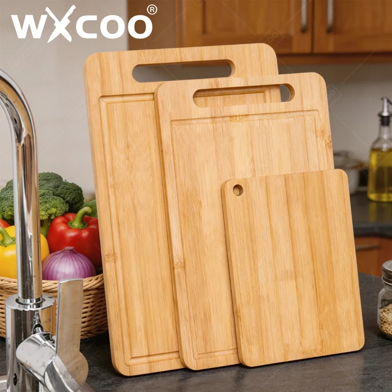 WXCOO Doppelseitiges Küchenbambusbrett Schneidebrett Natürliches Moso-Bambus Anti-Schimmel Haushaltsutensilien