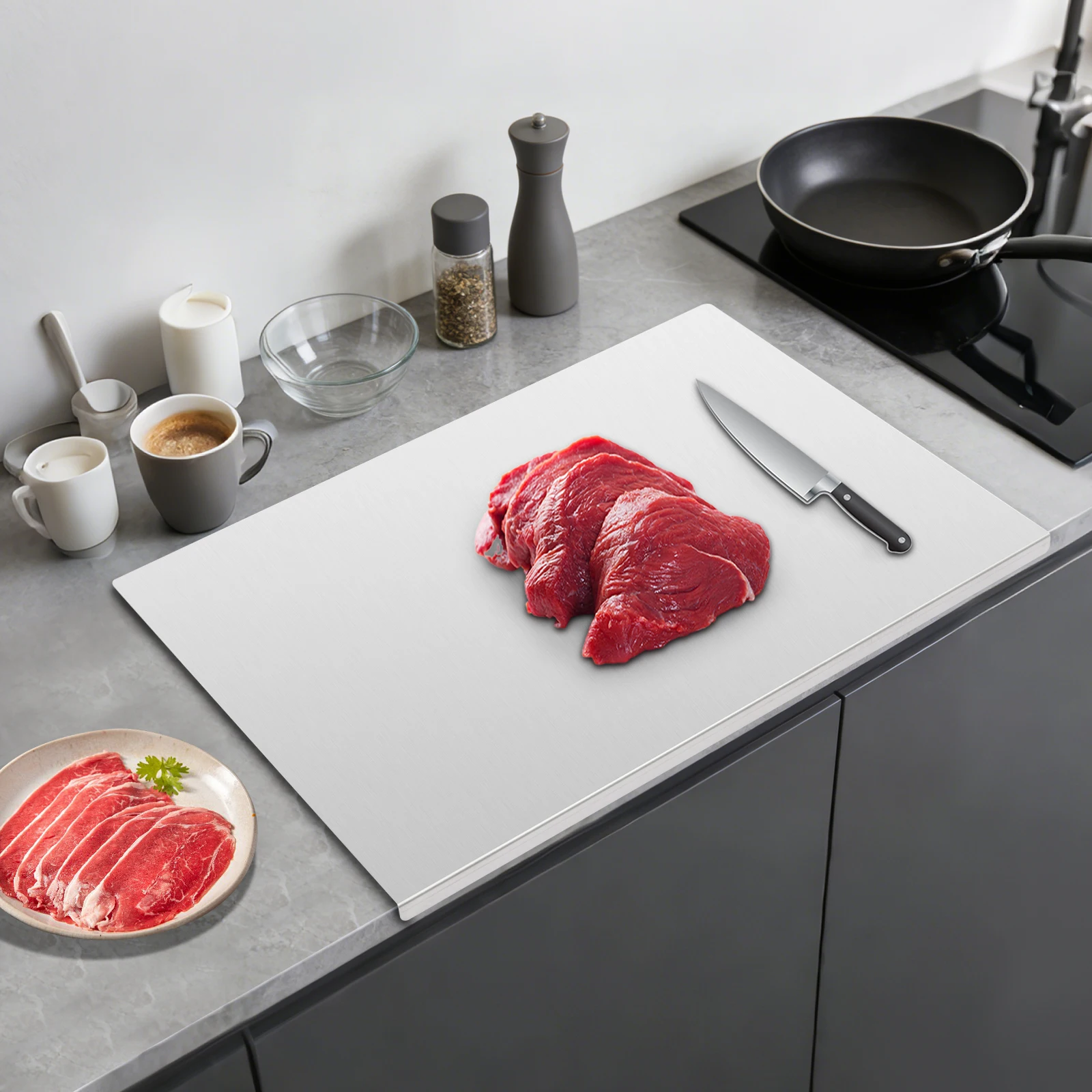 Schneidebrett aus Edelstahl 304, 27,6×19,7 Zoll, großes, robustes Kochbrett mit rutschfesten Pads, leicht zu reinigen