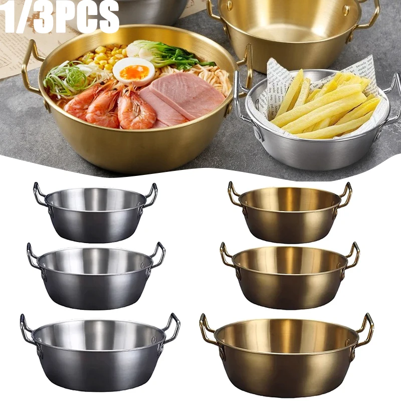 1/3PC EdelstahlKoreanische Küche Schüssel Salat Schüssel Haushalt Doppel Ohr Snacks Platte Suppe Schüssel Langlebig Instant Nudel schalen