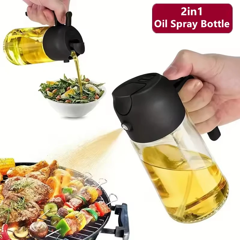 470 ml Ölsprüher zum Kochen, 2-in-1 Olivenölspender und Ölsprühflasche, Ölspray mit Aufklebern, Sprühflasche aus dickem Glas