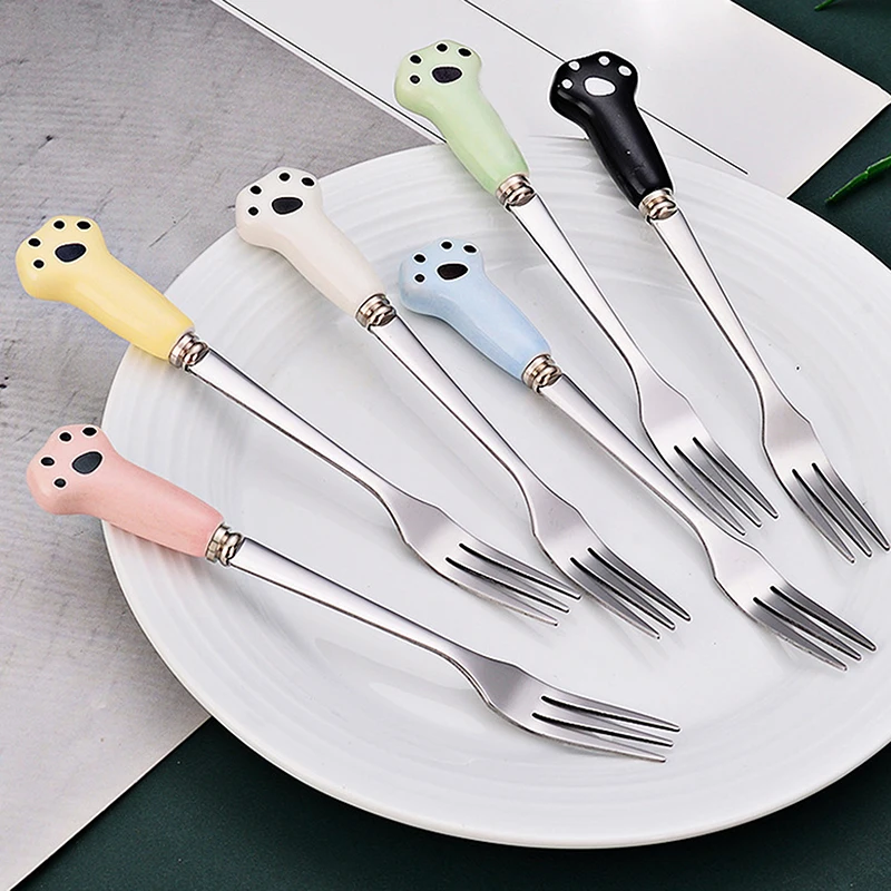 Niedliche Cartoon Katze Pfote Obst Gabel Lebensmittel qualität Edelstahl Kanten Spiegel poliert tragbare Geschirr Gabel für Erwachsene Kinder Schule