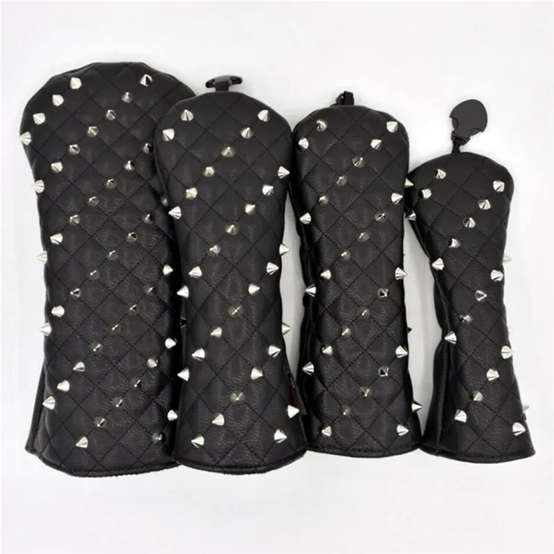 Silberne Nieten-Golfschlägerkopfhüllen aus PU-Leder für Golfschläger wie Driver, Fairwayholz und Hybrid für Herren und Damen