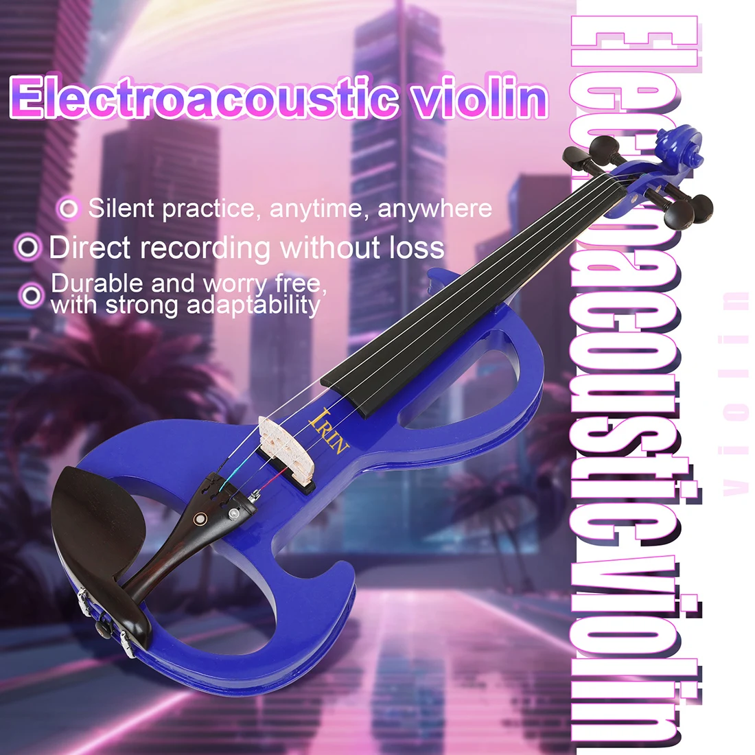 IRIN AU-01 Elektrische Violine 4/4 Einstellbare Lautstärke Massivholz Dunkelblau Violine Tragbare Anfänger Violine Strap Zubehör