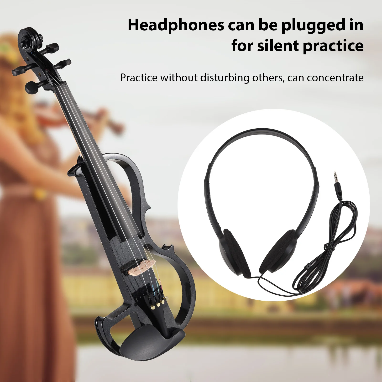 IRIN 4/4 Elektrische Violine Geige Massivholz Anfänger Student Violine Set Mit Kopfhörer Anschluss Kabel Und Klavier Box Teile