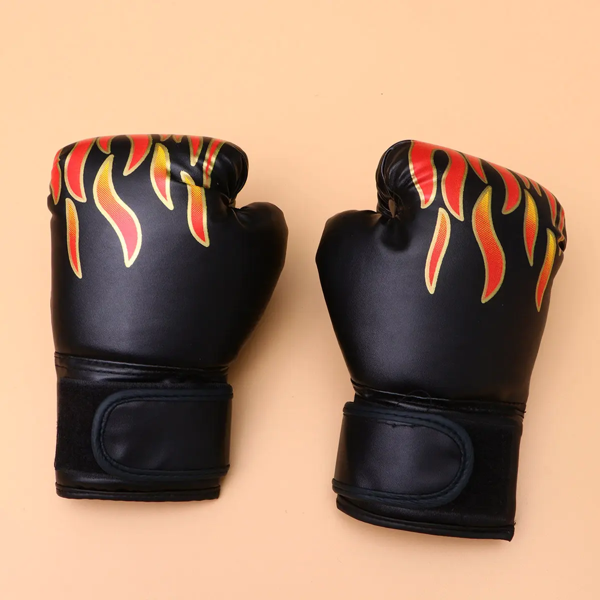 Flammenmuster-Boxhandschuhe aus PU-Material Trainingshandschuhe mit Atmungsaktiven Belüftungslöchern Eng Anliegend Abriebfest