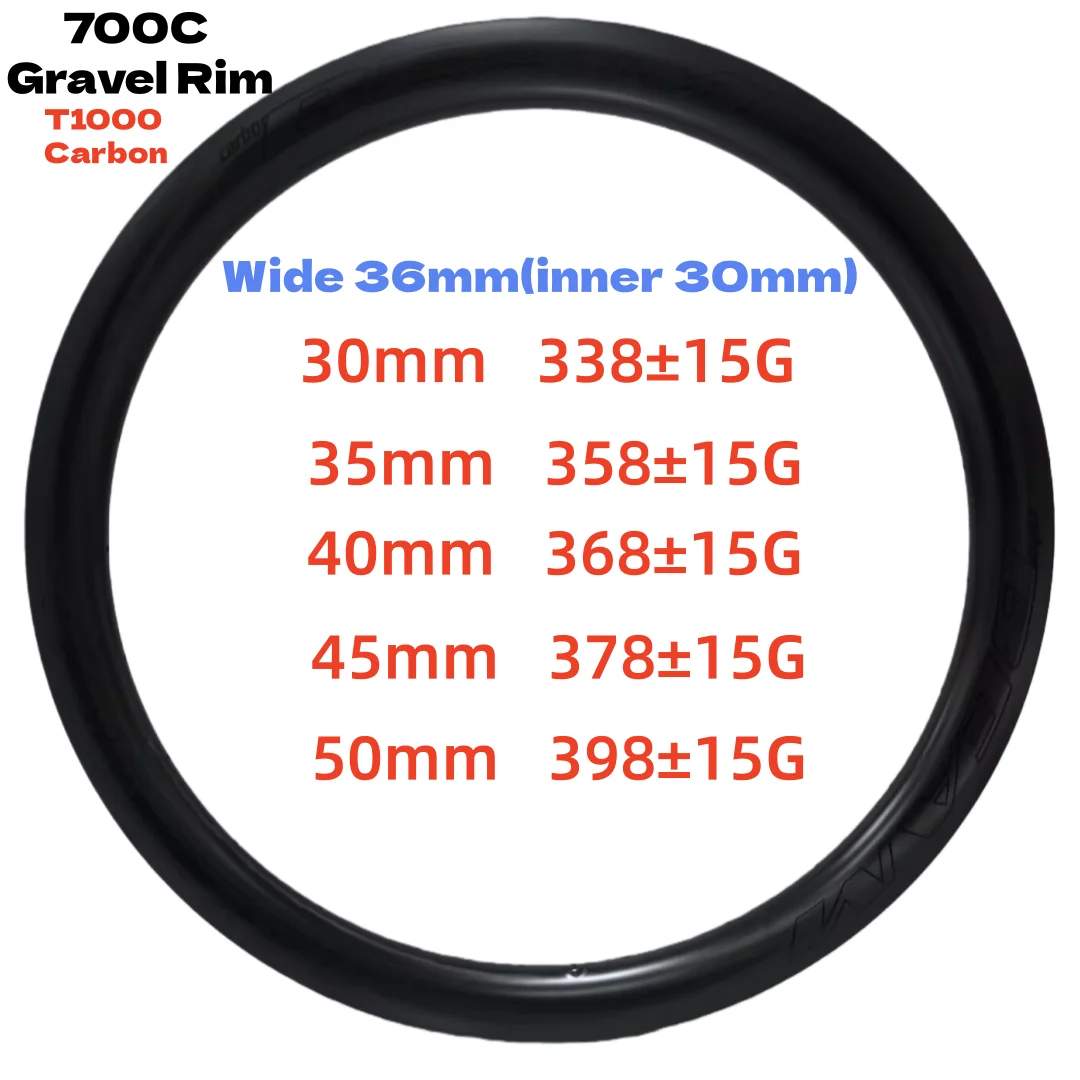 Lebenslange Garantie, breit 36 mm (Voll. 30 mm), 700C T1100 Carbon-Allroad-Rad, Kies, asymmetrische Fahrradfelgentiefe 50 mm, 45 mm, 40 mm, 35 mm, 30 mm
