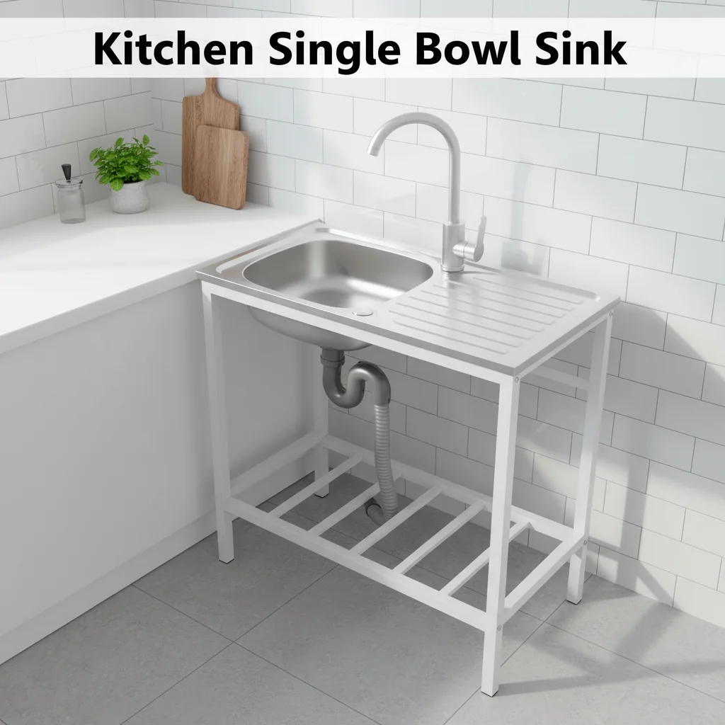 Freistehendes Küchenspülbecken mit 360° ° Wasserhahn, Einzelbecken, kommerzielles Waschbecken, 45 x 41 x 75 cm, Mehrzweckwaschbecken für Zuhause/Restaurant