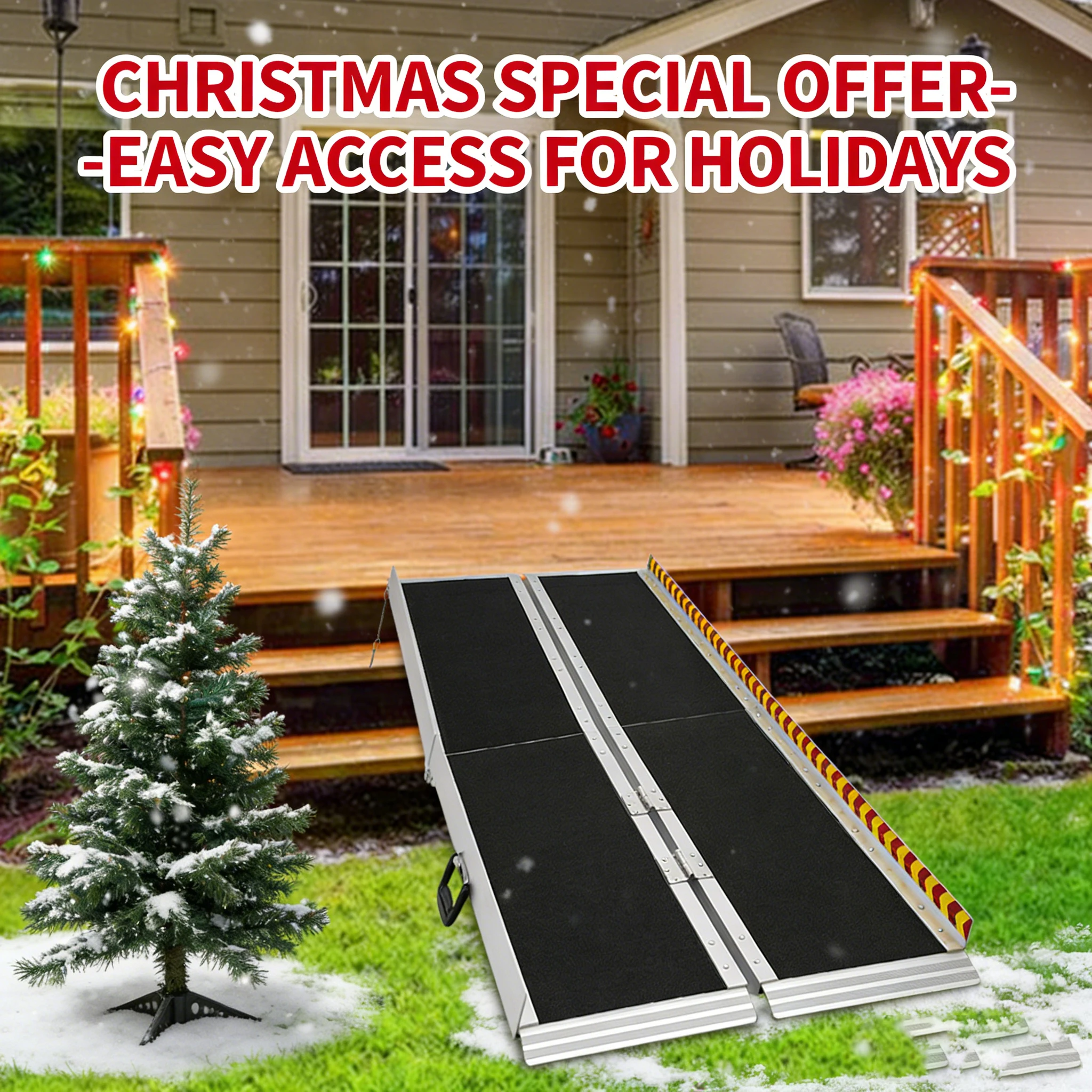 Tragbare Rollstuhlrampe und U-förmiger Handlauf, 1,5 m faltbare Aluminiumrampe für Treppen, Mobilitätszugang für ältere Menschen mit Behinderungen, Zuhause