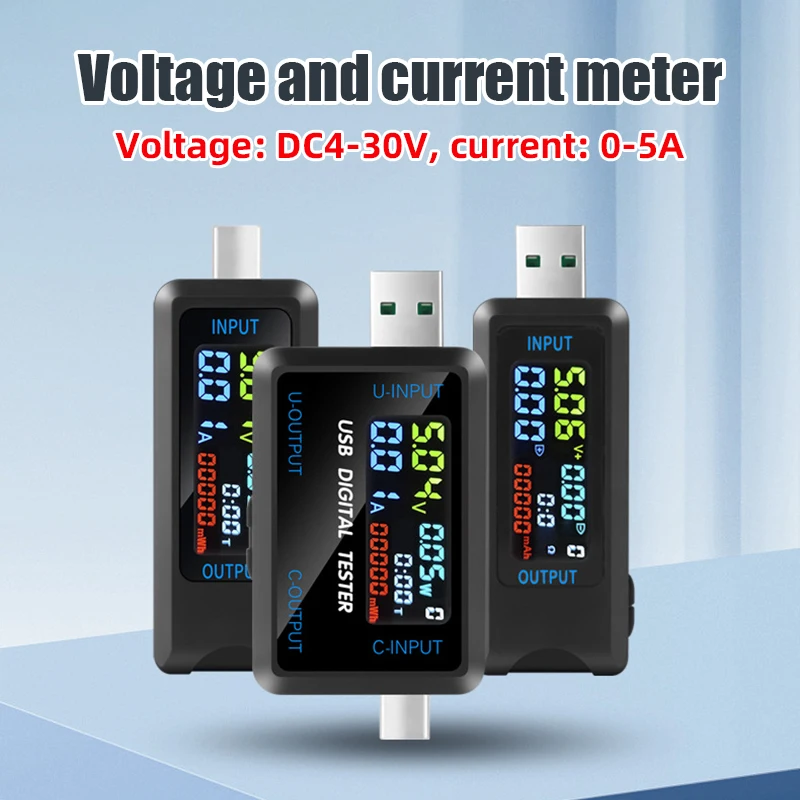 10-in-1-USB-Testmessgerät Typ C, buntes Display, USB-Tester, AC-Messgerät, Strom, Spannung, Monitor, Leistungsmesser