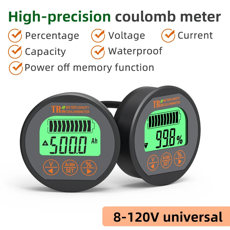 TR16 Batterietester Voltmeter Amperemeter 50A 100A 350A Digitale wasserdichte Batteriekapazitätsmonitoranzeige mit Speicherfunktion