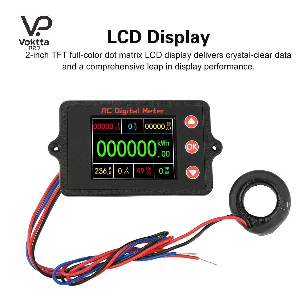 0-100A 2 Zoll AC Spannungs- und Strommessgerät TFT Farbdisplay Multifunktionales Digitales Leistungsüberwachungs- und Energie-Multimeter