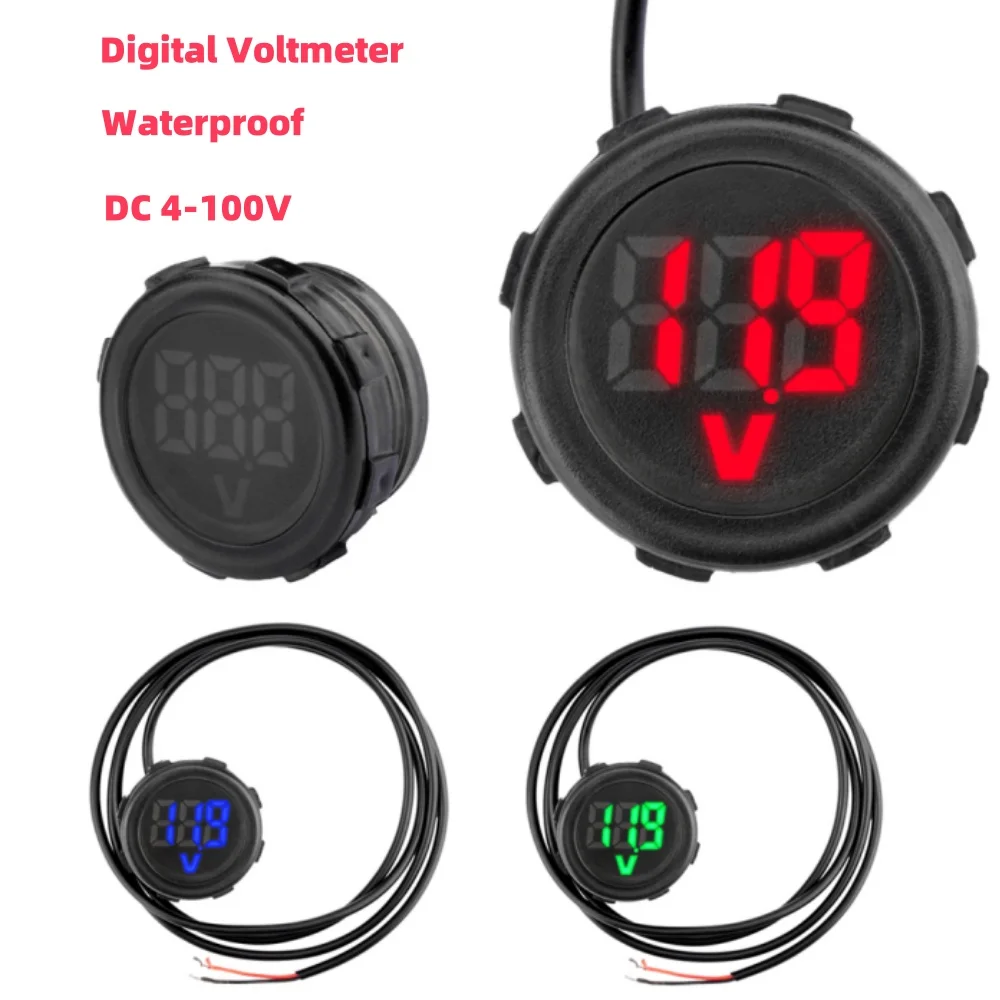 DC4-100V Wasserdichtes Voltmeter, automatischer Spannungstest, LED-Digitalvoltmeter, kreisförmiges 2-Draht-Voltmeter, Schutz mit umgekehrter Verbindung