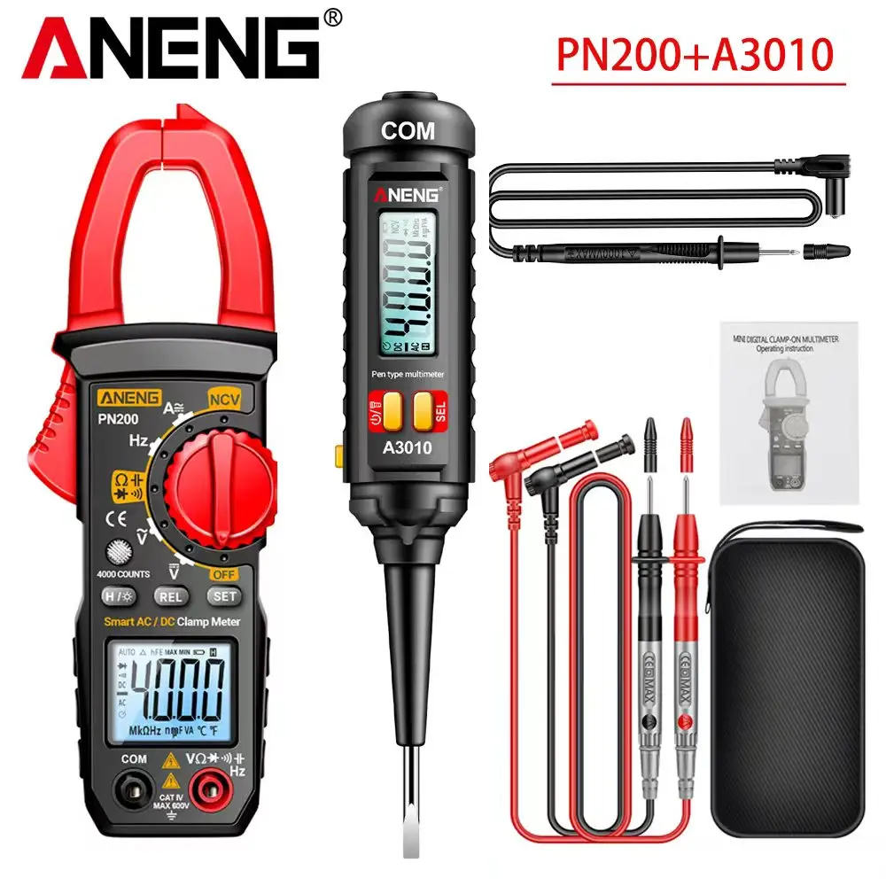 ANENG PN200 Digitales Zangenmultimeter + A3010 Stiftförmiger Digitaler Spannungsprüfer-Kit, AC/DC-Spannung/Kapazität/Widerstand/NCV-Test