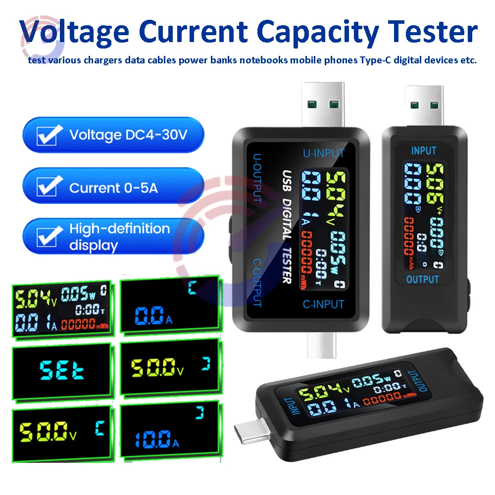 Typ-C/USB Tester Digital Voltmeter Batterie Kapazität Tester Spannung Strom Meter Amperemeter Detektor Power Bank Ladegerät Anzeige