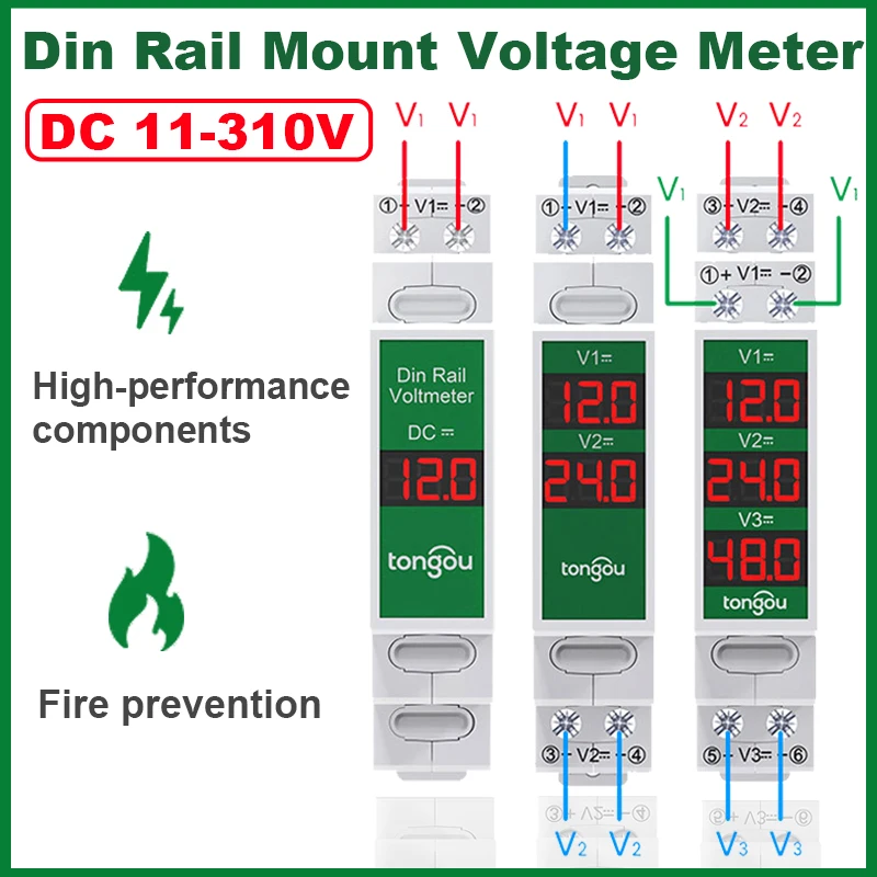 Einzel-/Doppel-/Dreifach-Wege-Spannungsmesser für DIN-Schienenmontage, DC 11–310 V, hochpräzises, kälte- und hitzebeständiges Mini-Modularvoltmeter