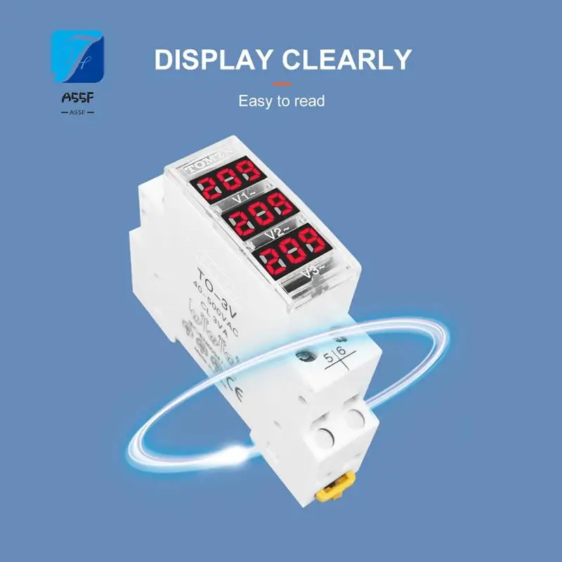 A55F-TOMZN Din Rail 18 mm Spannungsmesser AC 40–500 V dreiphasige modulare Voltmeter-Anzeige, LED-Digitalanzeige, weiße Du
