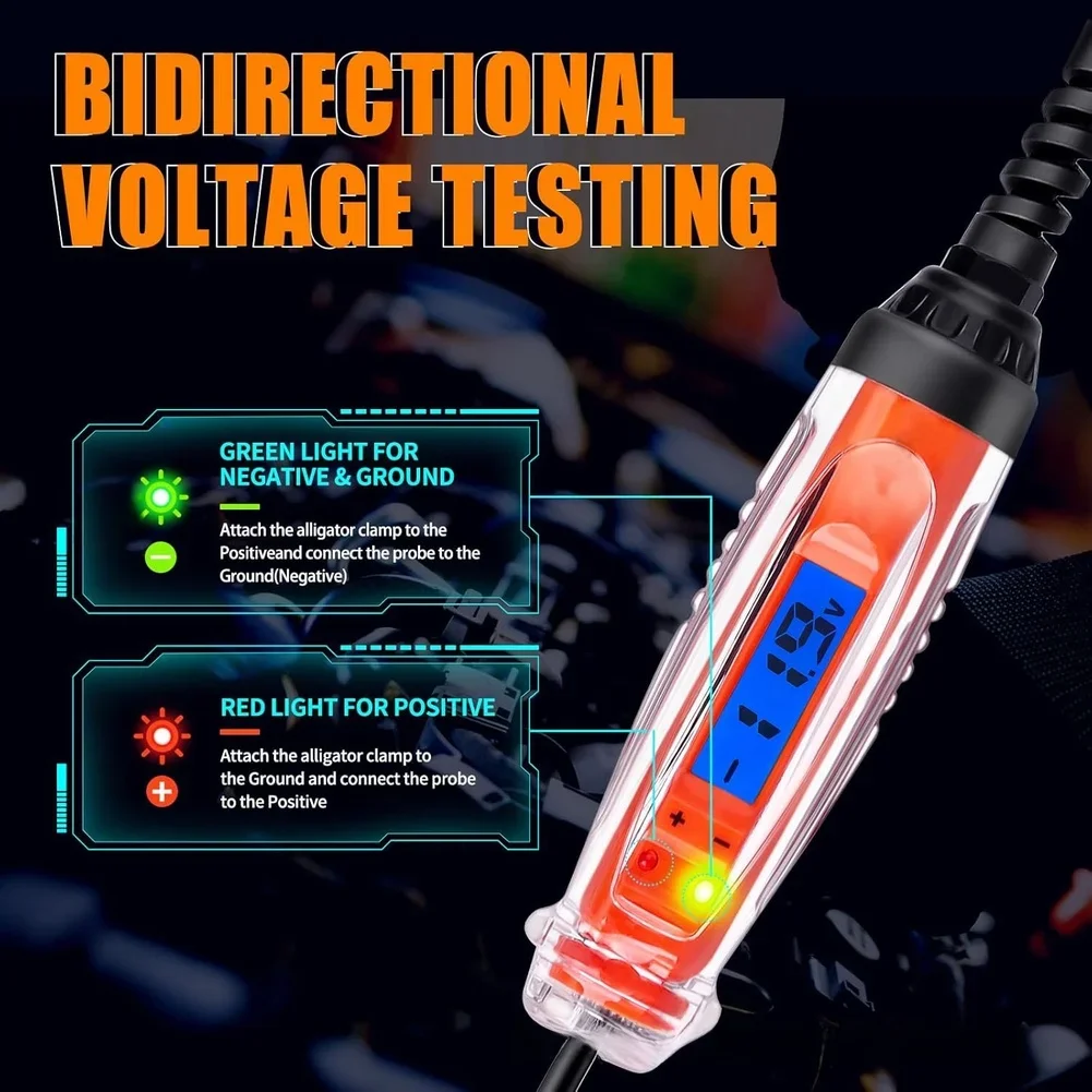 Kfz-Stromkreistester mit LCD-Digitalanzeige, 1 bis 75 V Spannungsdetektor, LED-Polaritätsanzeige für Autos, LKWs, Motorräder