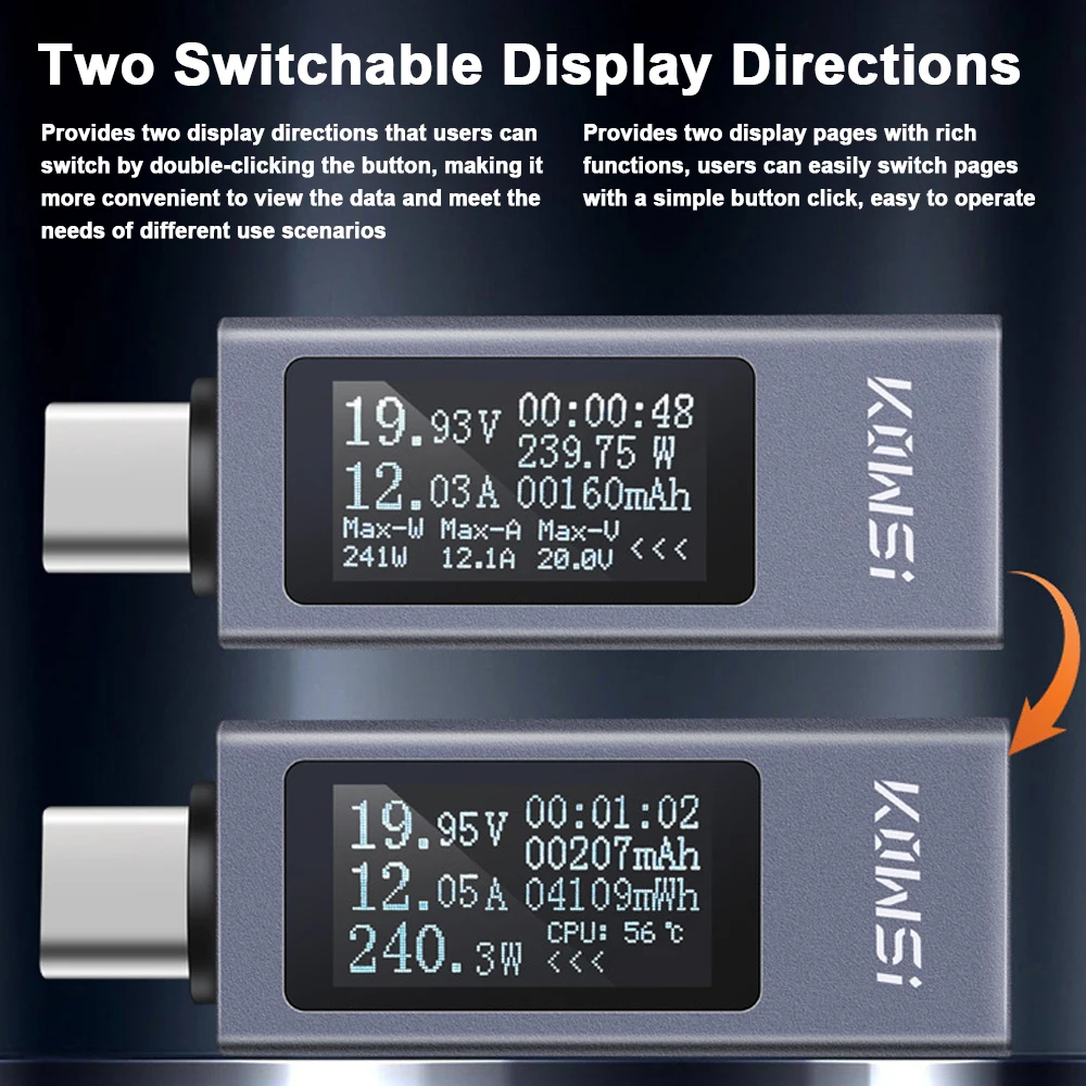 Typ-C Multifunktions-Digitalanzeige DC-Spannung Amperemeter Leistungsmesser Handy-Ladetester DC 4-30 V Spannung 0-12 A