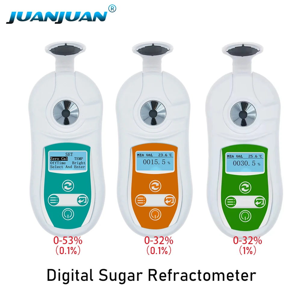Digitales Zuckerrefraktometer, tragbares Brix-Messgerät, Lebensmittel, Obst, Honig, Zucker, Brix-Refraktometer, 0–32 % 0–53 % Zuckerkonzentrationstester