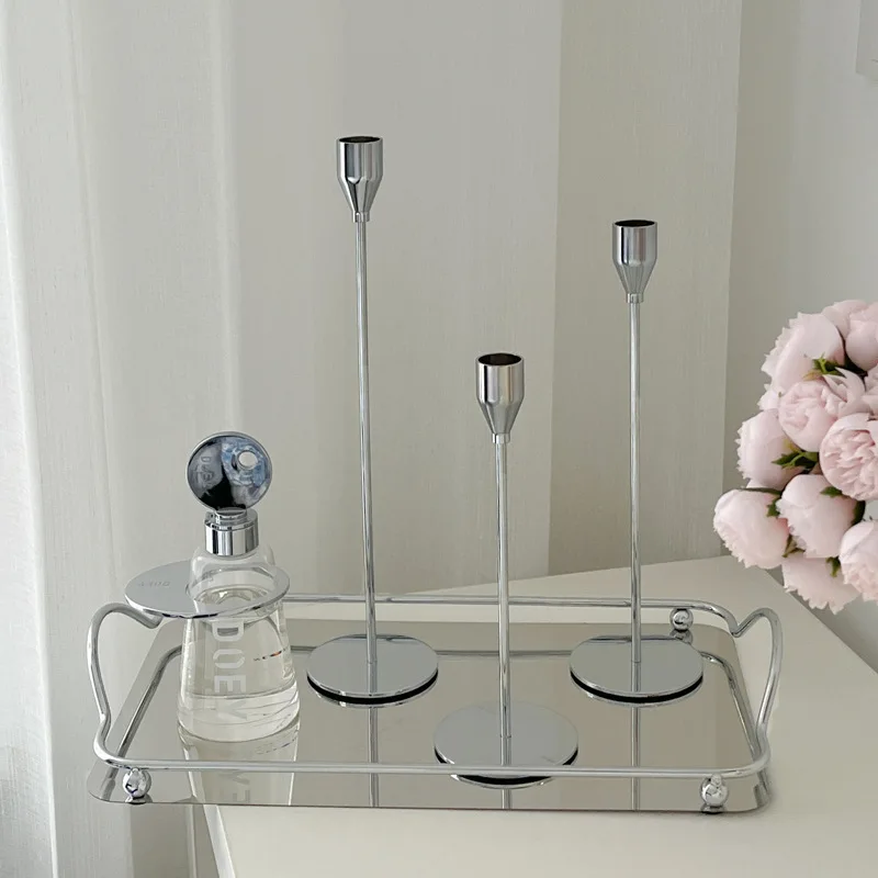 Nordic Einfache Stil Licht Luxus Silber Kerzenhalter Valentinstag Hause Romantische Candlelight-Dinner Westlichen Lebensmittel Ornament