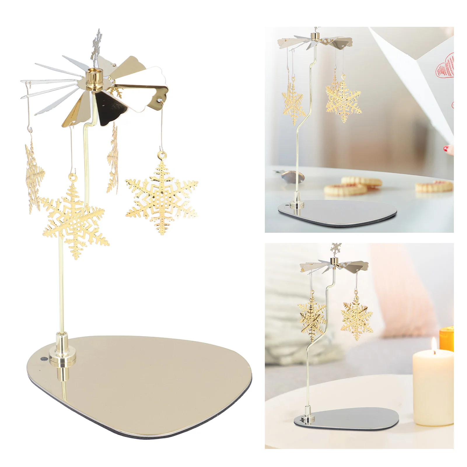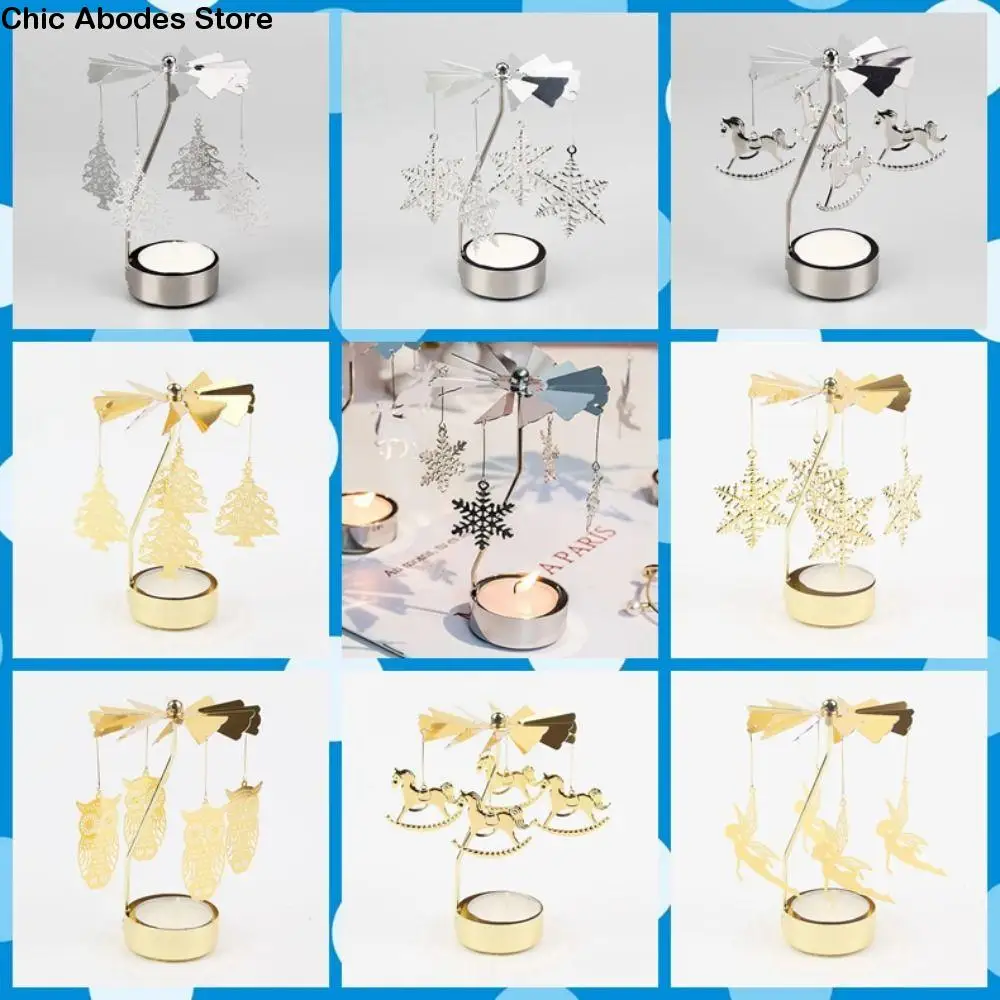 Kerzenhalter, rundes dreieckiges Tablett, romantischer europäischer Stil, rotierender Aromatherapie-Windspiel-Kerzenhalter aus Edelstahl