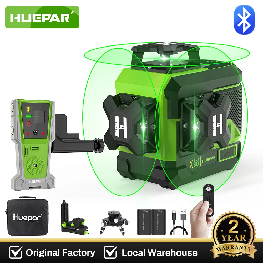 Huepar 12-Linien-Grünlaser-Wasserwaage Osram Selbstnivellierendes Kreuzlinien-Laser-Wasserwaage-Werkzeugset mit Fernbedienung, LCD-Bildschirm und Laserdetektor