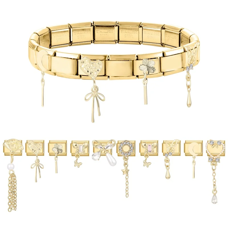 Gold Farbe Zirkon Schmetterling Mond Stern Herz Italienischen Charme Link Fit 9mm Edelstahl Armband Frauen Männer DIY Machen geschenke