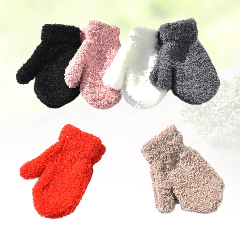 6 Paar warme Winterhandschuhe für Kinder, vollständig bedeckende Fäustlinge, langlebig, praktischer Handschutz, stilvolles, schlichtes Design, kalte Tage
