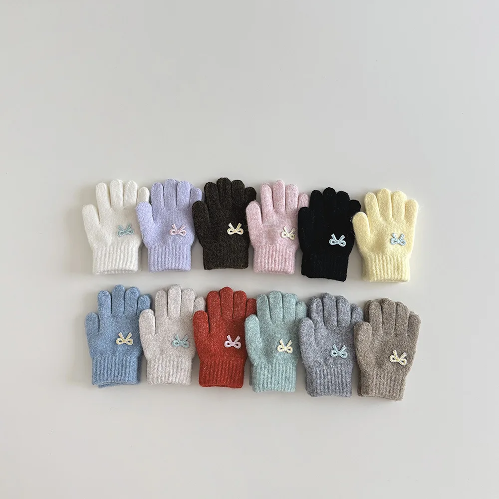 Koreanischen Stil Gestrickte Handschuhe Für Mädchen Winter Warme Verdickung Plüsch Fünf-finger Kinder Handschuhe Nette Bogen kinder Mode handschuh Neue