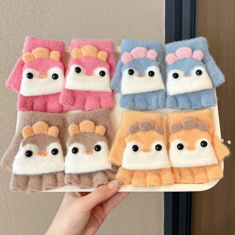 Mode Niedlichen Cartoon kinder Handschuhe Kälte Beweis Winddicht Halbfinger Handschuh Gestrickte Warme Handschuhe Herbst Winter