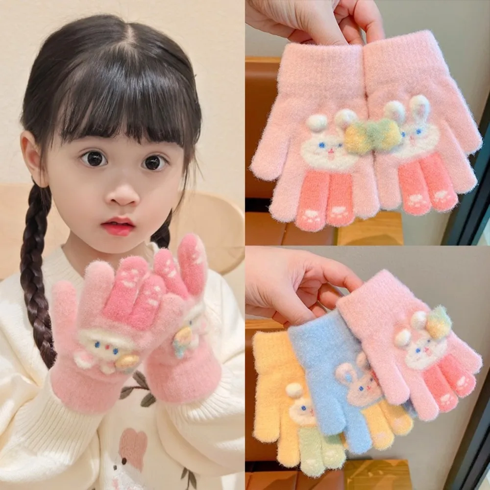 Kawaii Cartoon Kaninchen Kinder Gestrickte Handschuhe Verdickt Winter Warme Kinder Volle Finger Handschuhe Outdoor Sport Winddicht Handschuhe