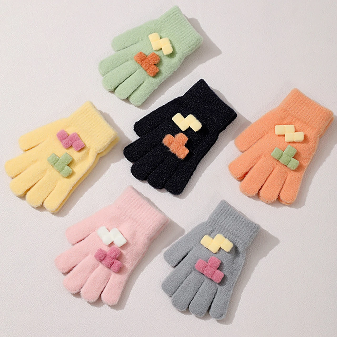 Koreanischen Stil Gestrickte Handschuhe Für Mädchen Winter Warme Verdickung Plüsch Fünf-finger Kinder Handschuhe Nette Bogen kinder Mode handschuh Neue