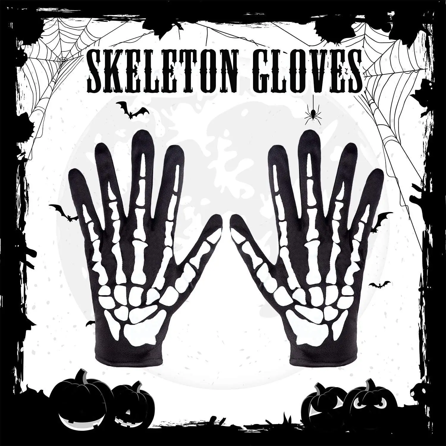 A71Z 2 Paar Halloween-Skelett-Handschuhe mit Skelett-Armmanschette, voller Finger, langer Arm, Skelett-Handschuhe für Kinder und Erwachsene