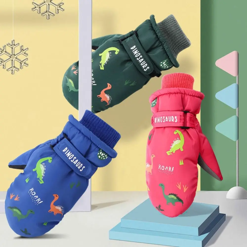 Cartoon Dinosaurier Ski Handschuhe Futter Winddicht Thermische Schnee Handschuhe Wasserdichte Verdickte Finger Handschuhe Für Junge Mädchen Kinder