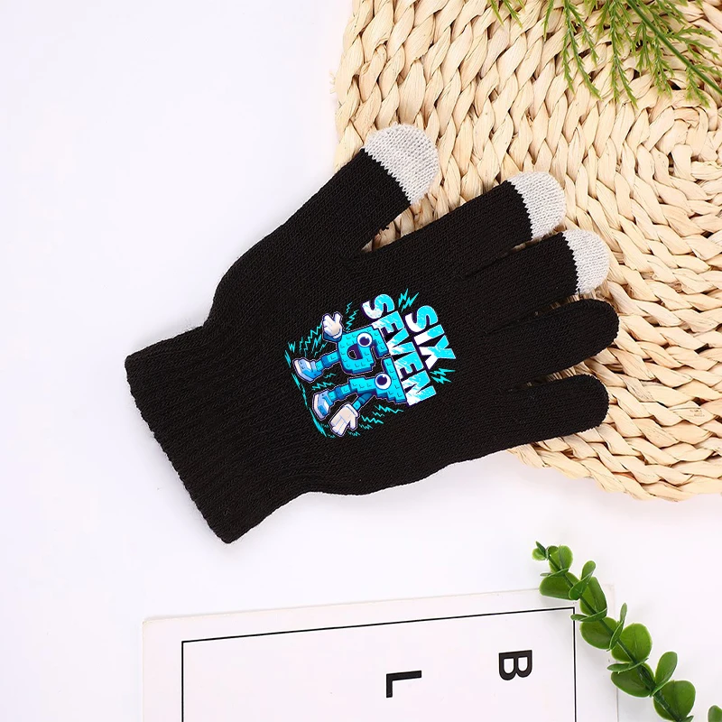 7-12 Jahre alte Winter-Strickhandschuhe, warme Plüsch-elastische Fünf-Finger-Handschuhe, modische Cartoon-Dinosaurier-Kinderhandschuhe für Jungen und Mädchen