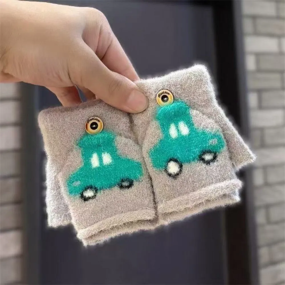 Cartoon Kinder Flip Cover Handschuhe Winter Fäustlinge Koreanischen Stil Rentier Handschuhe Warme Verdicken Halb Finger Gestrickte Handschuhe Winter