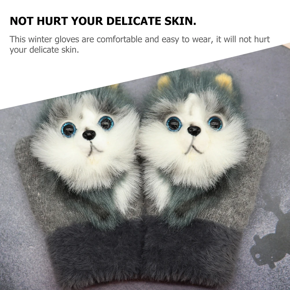 Winterwarme Strickhandschuhe mit Cartoon-Muster, dicke Fäustlinge für Kinder, Jungen und Mädchen