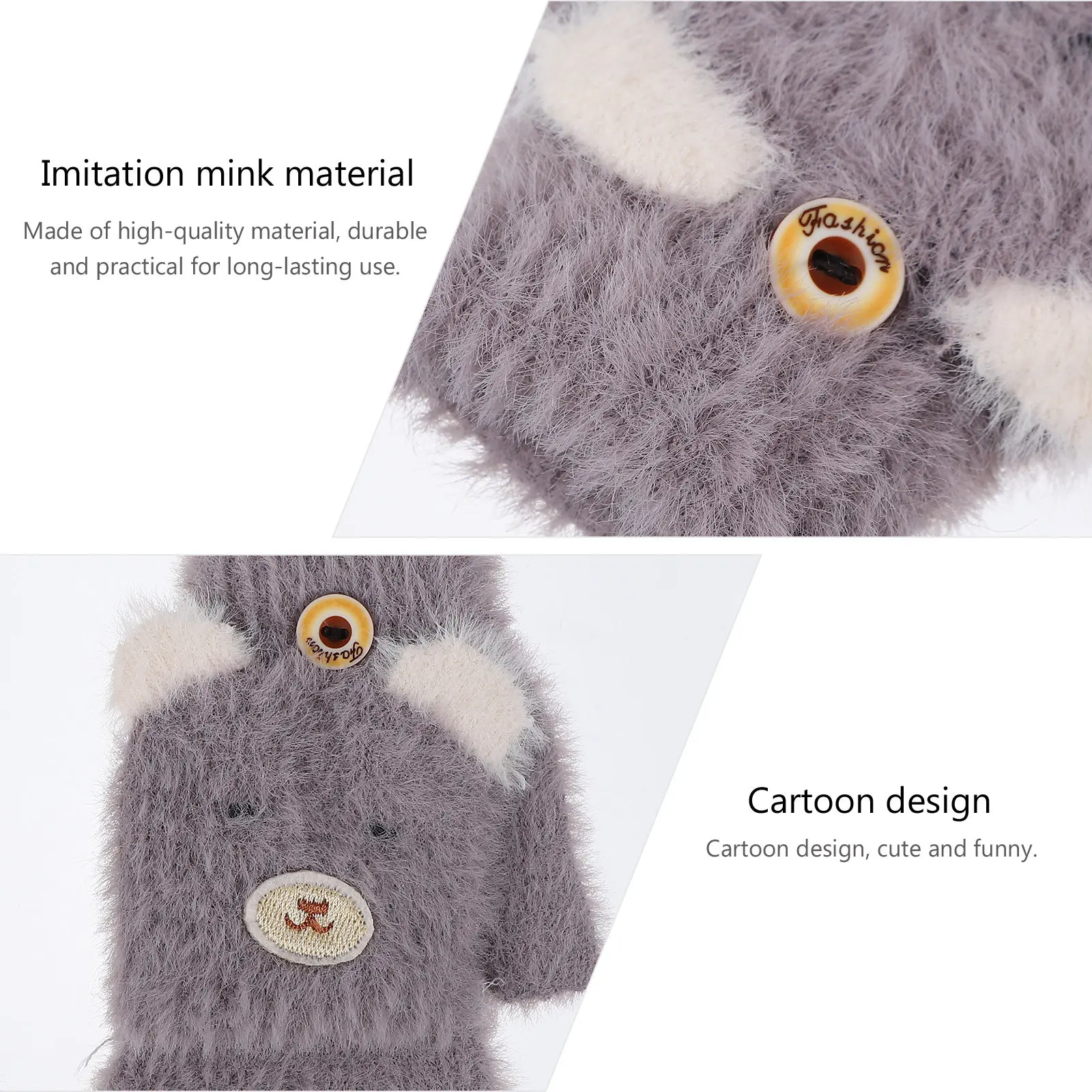1 Paar fingerlose Kinderhandschuhe mit halben Fingern, warmes Klappendesign, atmungsaktiv, rutschfest, Cartoon-Winterhandschuhe für den Innen- und Außenbereich