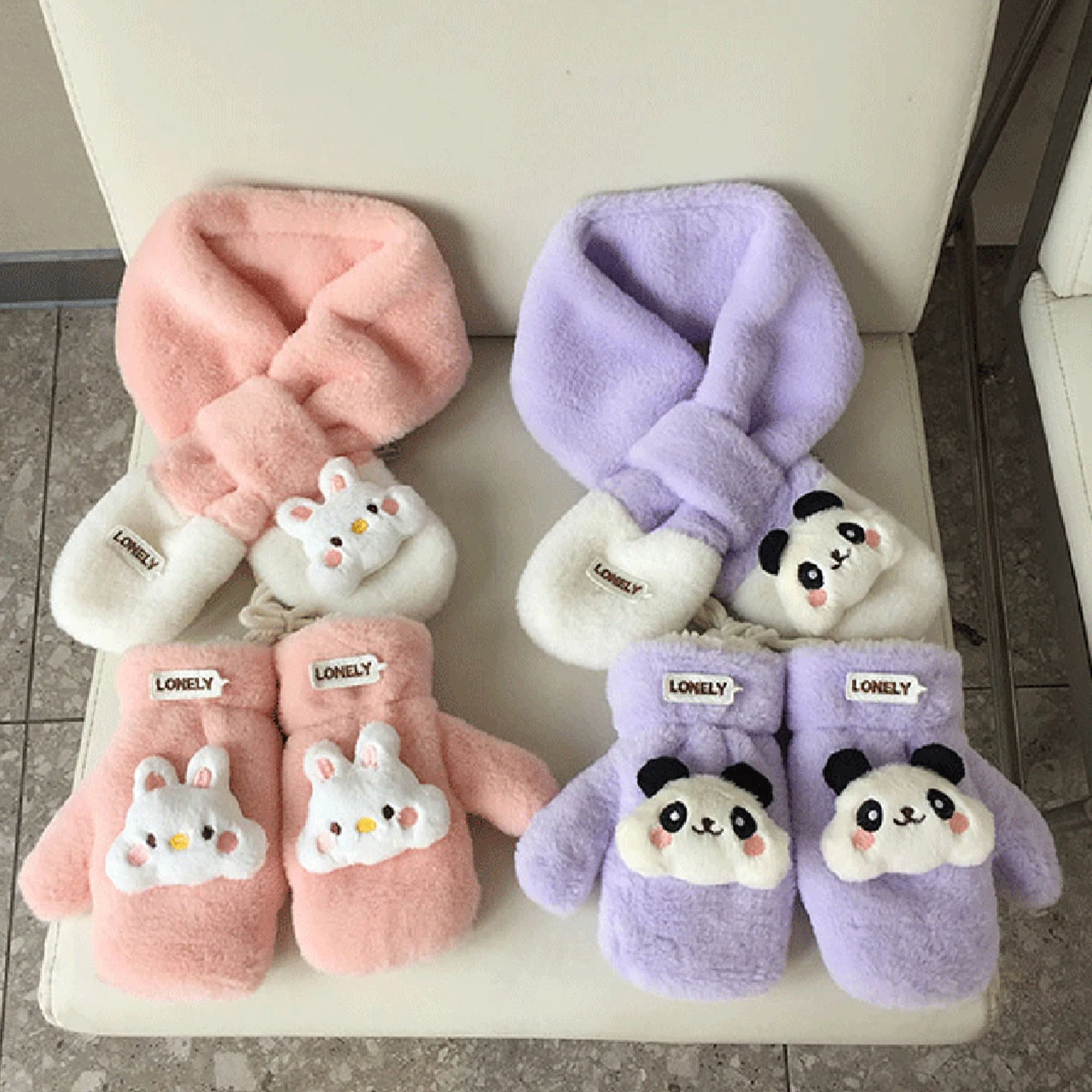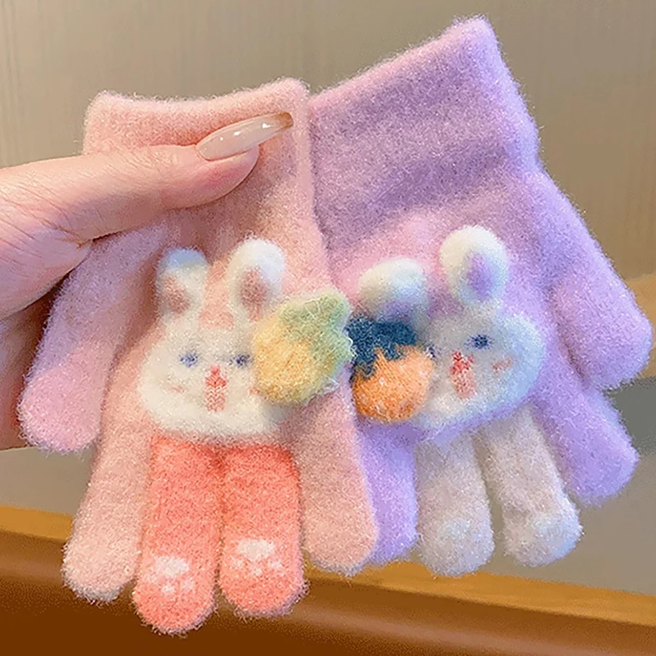 Niedliche Kaninchen-Handschuhe für Kinder und Mädchen, warme Samt-Split-Finger-Fäustlinge, Winter-Baby-Handabdeckungen, 2–8 Jahre Kinder-Wollstrickhandschuh