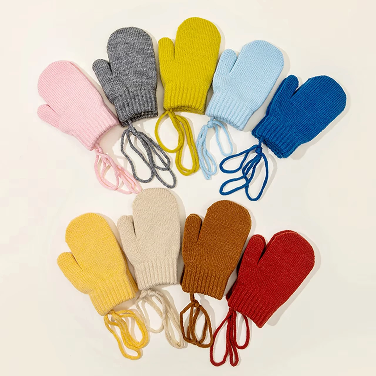 Winterhandschuhe für Kleinkinder, dick, warm, gestrickt, Fäustlinge für Jungen und Mädchen, Baby-Fäustlinge, elastische Handgelenkmanschette, Schutz für kaltes Wetter, Blau