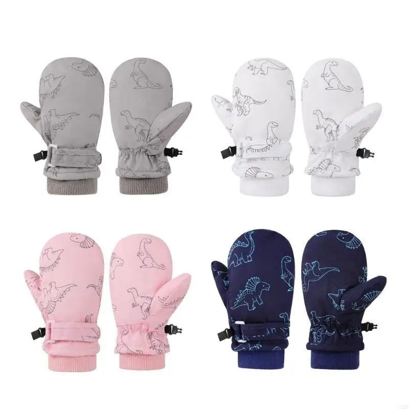 54DF Kinder Winter Warme Schnee Handschuhe Kinder Ski Handschuhe Spritzwassergeschützte Fäustlinge Drucken Dinosaurier Muster