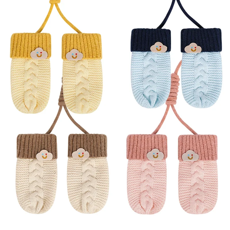 Koreanischen Stil Gestrickte Handschuhe Für Mädchen Winter Warme Verdickung Plüsch Fünf-finger Kinder Handschuhe Nette Bogen kinder Mode handschuh Neue